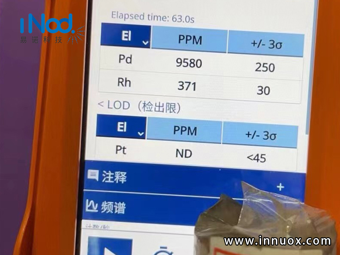 若是手持式光譜儀檢測結果“Pt”鉑元素含量結果為“ND<45ppm” ,那么就是“為檢測到樣品中存有鉑元素含量”,若是有鉑元素的存在,那么含量就會在百分比0到45之間,“<LOD”還將收到樣本密度與厚度以及窗口覆蓋程度所影響,若是測試很薄的樣品,我們可以通過窗口前添加更多樣品來減少原本的“<lod< font="">”的數量,增加返回探測器的X射線量讓結果更加準確。