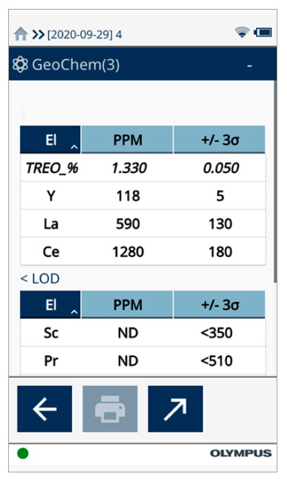 使用奧林巴斯Vanta手持式XRF光譜儀上的偽元素功能,可以在現(xiàn)場實時計算TREO的含量。在檢測過程中,儀器可以完成所有計算,如圖4所示。