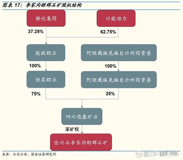 四川能投鋰業控制的德鑫礦業擁有李家溝鋰礦采礦權,2021年,川能動力以9.27億元完成對四川能投鋰業62.75%股權的收購,剩余股權(37.25%)歸屬于雅化集團。