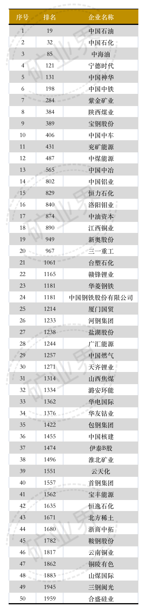 最新福布斯全球企業2000強出爐!上榜的中國礦業相關企業共有50家