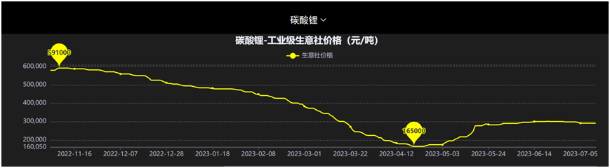 今年上半年,碳酸鋰從去年底的51萬元/噸跌至今年4月底的18萬元后;6%品位的鋰輝石中國(CIF)由年初時的每噸6000美元以上最低跌破今年4月的4000美元。五月份,碳酸鋰和鋰輝石中國(CIF)回暖,但也難現(xiàn)從前盛況!