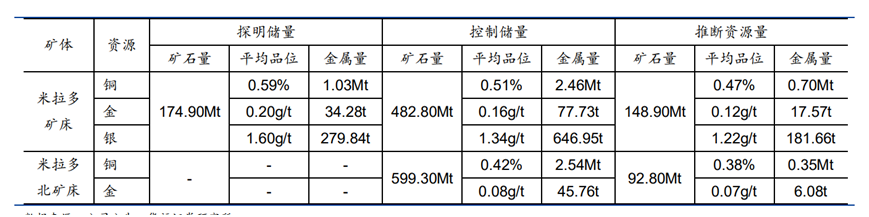 米拉多銅礦床一期于2021年達(dá)產(chǎn),銅礦石的處理能力為 2000萬(wàn)噸/年,每年產(chǎn)出約9萬(wàn)噸銅金屬量對(duì)應(yīng)的銅精礦,二期設(shè)計(jì)擴(kuò)大到 2,640萬(wàn)噸/年;米拉多北銅礦床二期設(shè)計(jì)采選能力 1980萬(wàn)噸/年。米拉多銅礦整體二期項(xiàng)目預(yù)計(jì)于2025年6月建成投產(chǎn),擴(kuò)建后總采選規(guī)模將達(dá)4620萬(wàn)噸/年,預(yù)計(jì)每年產(chǎn)銅超20萬(wàn)噸。
