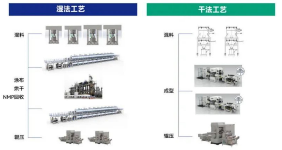 當下,電池制造技術主要有兩種,濕法工藝和干法工藝。