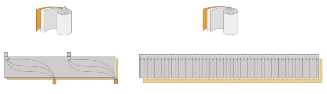 (雙極耳、全極耳平面圖 圖片來源:逸飛激光)