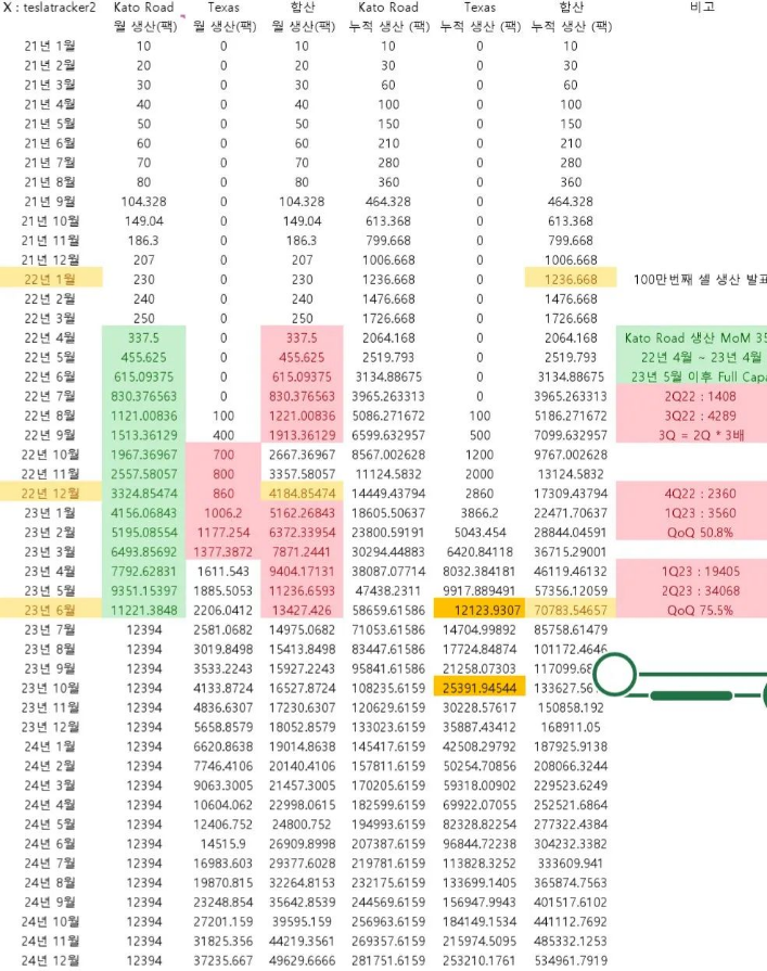 眾所周知,德州工廠目前還只是一條產線在生產,到今年年底,另外三條產線也有可能開動。除此之外,有韓國媒體爆料,特斯拉弗洛蒙德工廠的量產能力已經達到月800萬只水平。根據韓媒流出的數據,到明年年中,加上弗洛蒙德的一條試驗線和工廠對面的新場地新線,特斯拉月產能將達到6,000萬只。