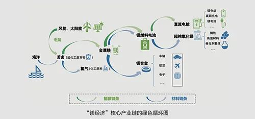 “鎂經(jīng)濟(jì)”是新能源與新材料相融合的綠色循環(huán)經(jīng)濟(jì)。“鎂經(jīng)濟(jì)”綠色循環(huán)產(chǎn)業(yè)鏈的源頭,從原料講是取之不盡的海鹵水,從能源講是用之不竭的可再生能源。利用鎂既是工業(yè)材料又是能源載體的雙重屬性,“鎂經(jīng)濟(jì)”可同時實(shí)現(xiàn)新能源和新材料兩大產(chǎn)業(yè)的綠色循環(huán)、優(yōu)勢整合:既解決了風(fēng)光電的儲能難題,又將無法處理的鹽化工行業(yè)廢棄物苦鹵“變廢為寶”,變成可帶動國民經(jīng)濟(jì)眾多領(lǐng)域?qū)崿F(xiàn)產(chǎn)業(yè)升級的重要基礎(chǔ)材料。
