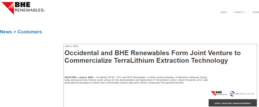 美東時(shí)間4日,巴菲特重倉持股的西方石油公司與巴菲特旗下的伯克希爾哈撒韋能源公司(BHE)宣布成立一家合資企業(yè),用于部署TerraLithium的直接鋰提取(DLE)技術(shù)及相關(guān)技術(shù),以從地?zé)猁u水中提取和商業(yè)化生產(chǎn)高純度鋰化合物。