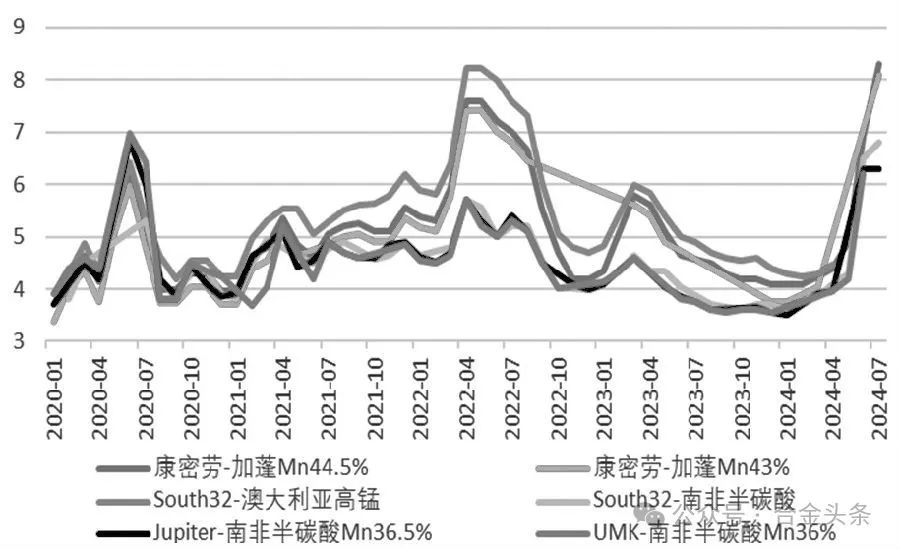 圖為錳礦外盤報價(單位:美元/噸度)