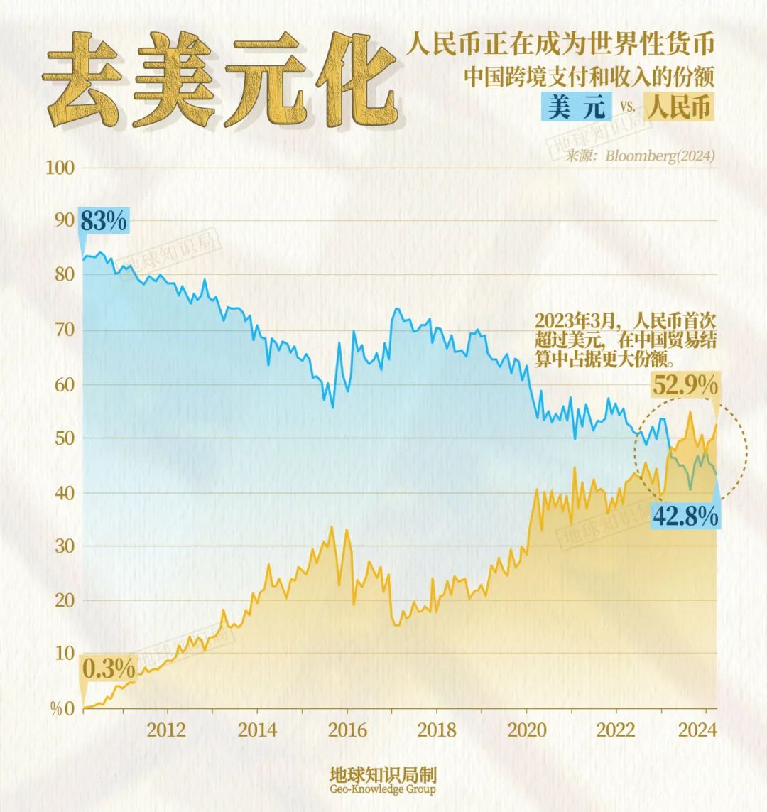 美國憑借其超級大國的綜合實力,維系金融霸權長達七十多年。如今中國已成長為世界第二大經濟體,越來越多的國際貿易使用人民幣來結算。