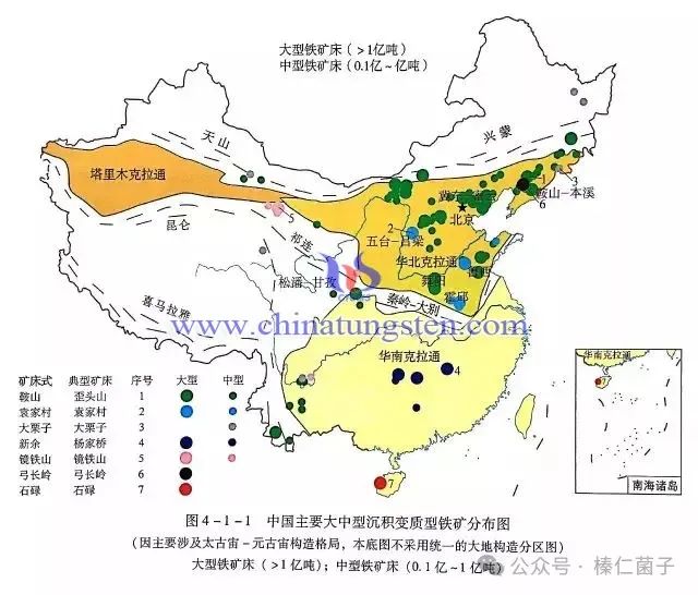中國大陸除了華北地區有少量的“前寒武紀地層”地層之外,大部分地區是中新生代才隆起成為陸地的,地表中新生代地層分布范圍廣、面積大。由于古老地層少,賦存于古老地層中的鐵礦資源量較少,導致中國“缺鐵”的礦產資源特點。