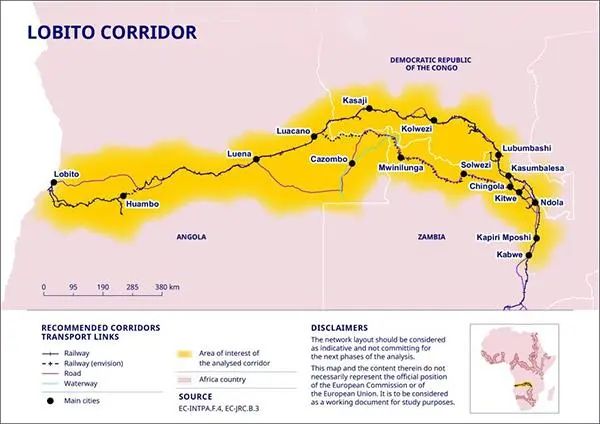 美歐積極推進(jìn)洛比托走廊建設(shè)。洛比托走廊項(xiàng)目被定位為G7“全球基礎(chǔ)設(shè)施和投資伙伴關(guān)系”倡議(PGII)在非洲的旗艦項(xiàng)目。走廊的主線路段均為已建成的鐵路,例如,安哥拉境內(nèi)長(zhǎng)達(dá)1344公里的本格拉鐵路線,是2015年在中資企業(yè)建設(shè)下恢復(fù)通車的;走廊的剛果(金)段和贊比亞段早期由歐洲殖民者所建造,但大部分路段年久失修,處于半廢棄狀態(tài)。