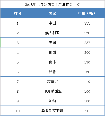 我國不僅是黃金的最大消費國,還是世界的最大產金國,中國在2007年取代南非成為世界第一產金大國。2011年,中國還是世界唯一的黃金產量超過300噸的國家。中國的黃金產量在2010年的基礎上增長了10噸。但在黃金儲量方面,表現就很一般了,僅有僅有1900多噸,在世界所有國家中,排名第七。