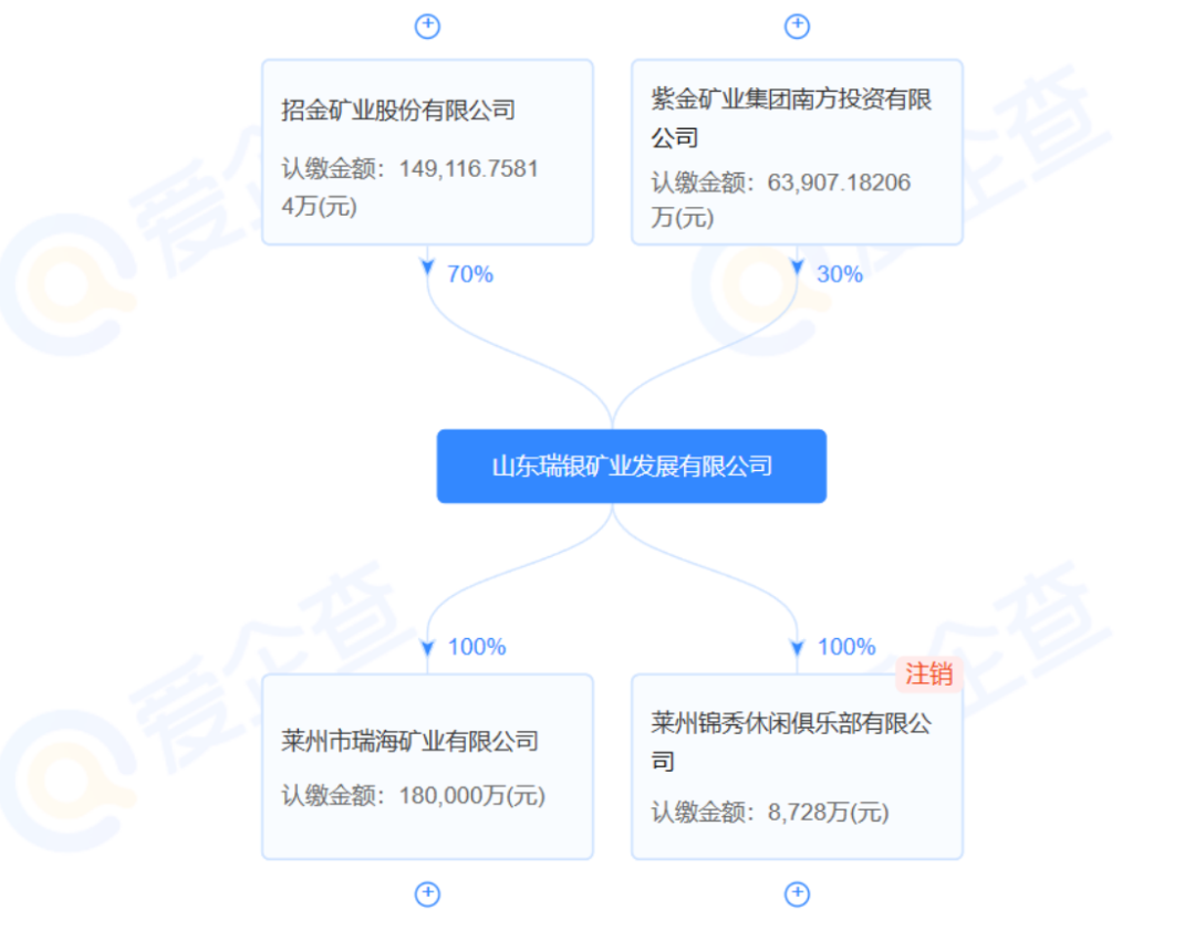 瑞海礦業持有三山島北部海域金礦100%權益,瑞銀礦業持有瑞海礦業100%股權。瑞銀礦業原來的股東有兩家,一家是招金礦業,持有63.86%的股權,另一家就是博文礦業,持有36.14%的股權。