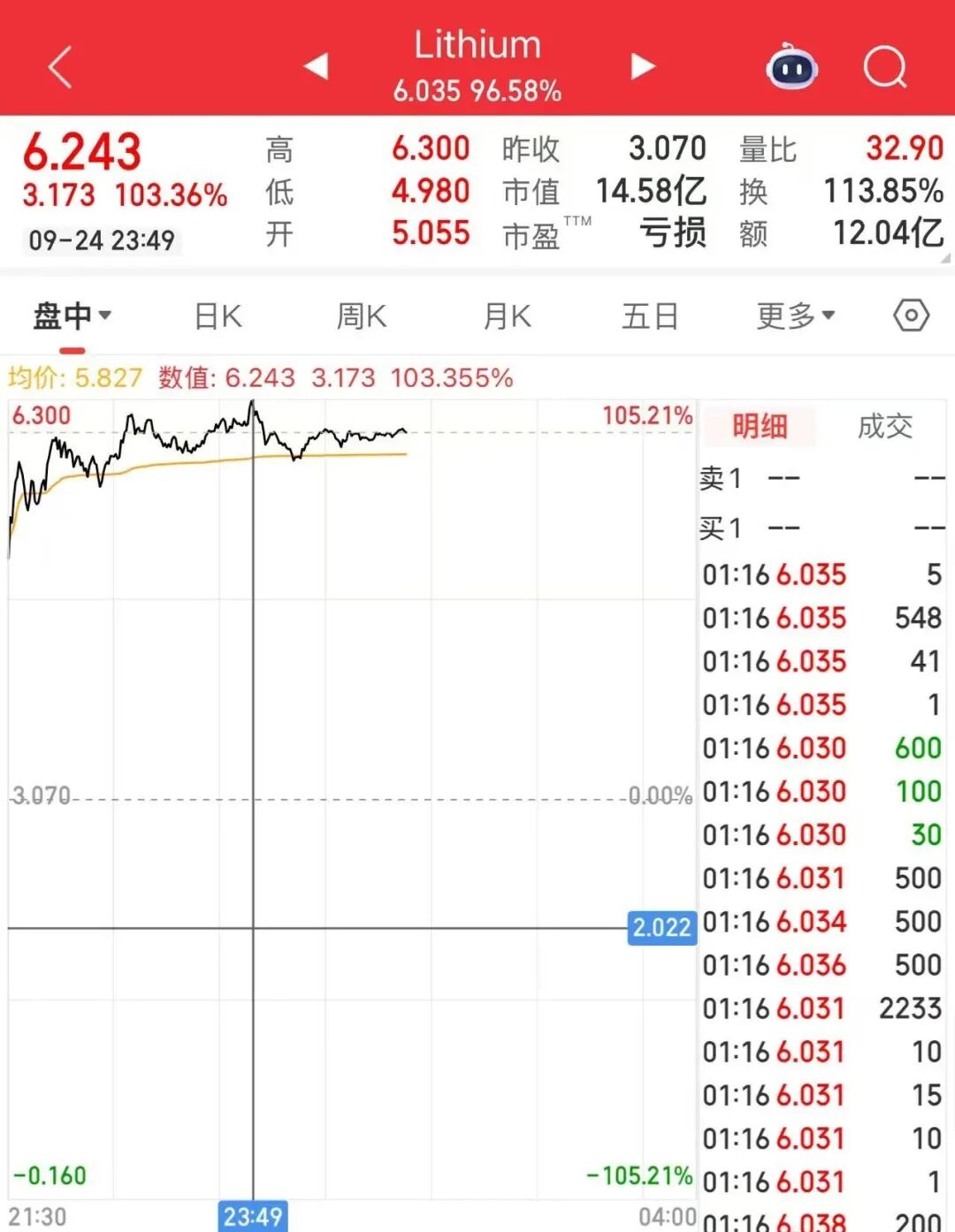 截至今晨收盤,美洲鋰業股價上漲95.6%。