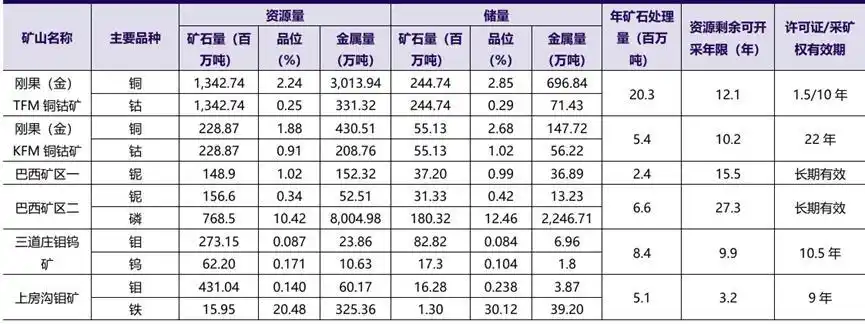 至2024年末,公司權益銅資源量居于全球第13位,中國第2位;鈷資源量全球第1,掌握全球近半鈷資源。