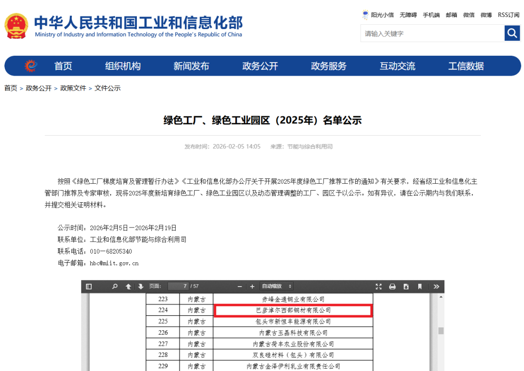 日前,工業和信息化部公布2025年度國家級綠色工廠、綠色工業園區名單,西部礦業所屬巴彥淖爾西部銅材有限公司憑借在能源低碳化、資源高效化、生產潔凈化等方面的突出表現成功入選,標志著企業綠色制造水平達到國家標桿級標準,成為有色金屬行業綠色轉型的典范。